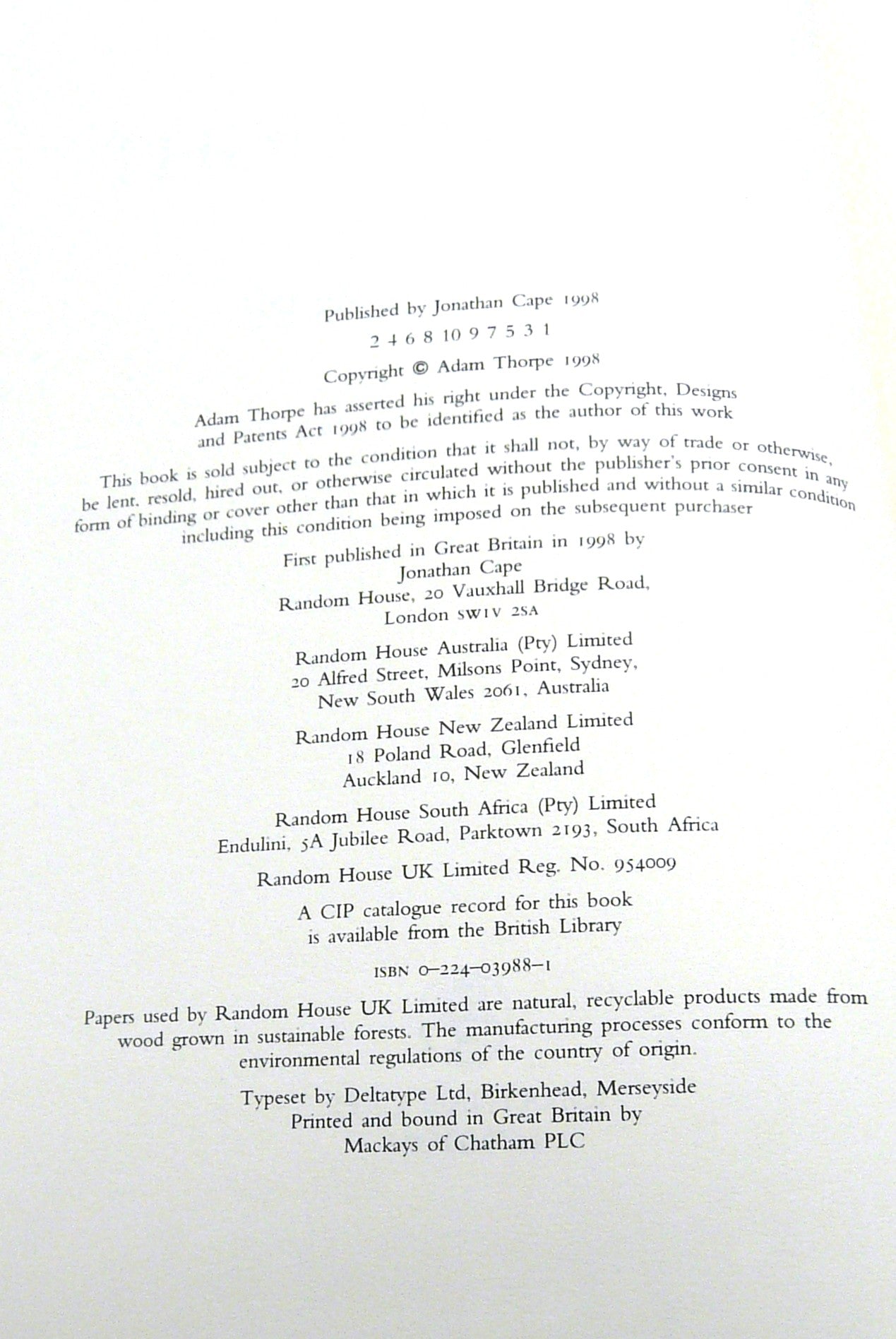 In all, this is a smart example of this modern first by Adam Thorpe. It is a modern novel steeped in a resonant past: where rural England and colonial Africa collide. Densely wrought and vividly imagined, it is a fictional triumph - thrilling and unforgettable (blurb).