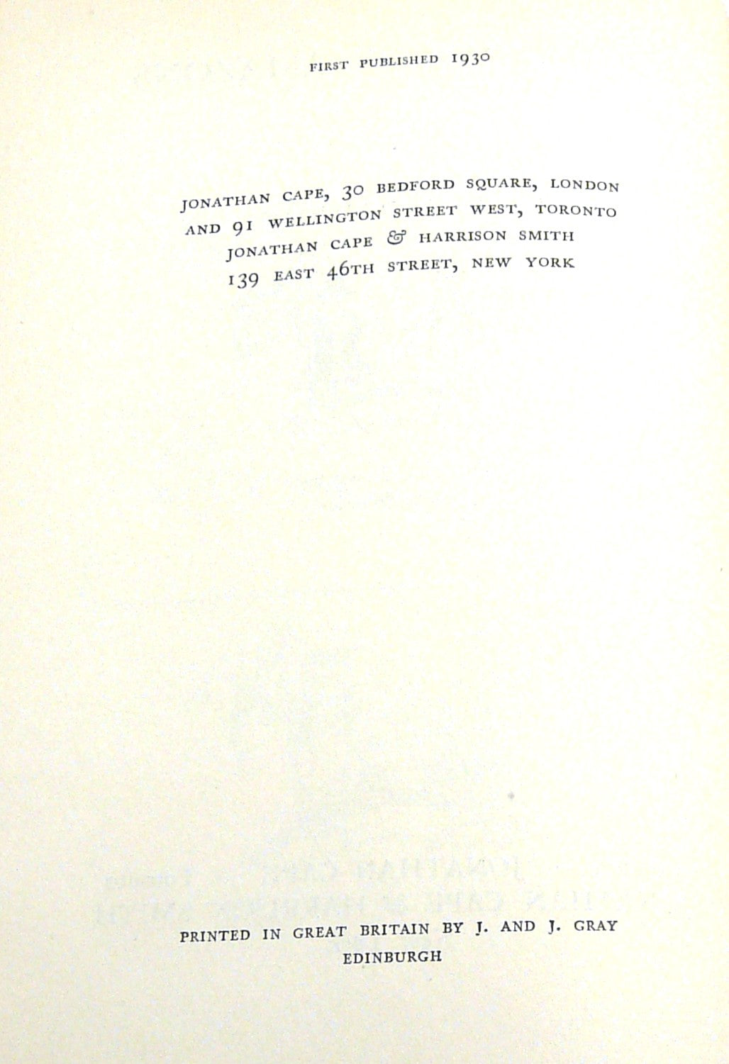 Published by Jonathan Cape, London; 1930. 8vo. 350pp. First edition, first impression. Condition: Very Good/ Very Good.