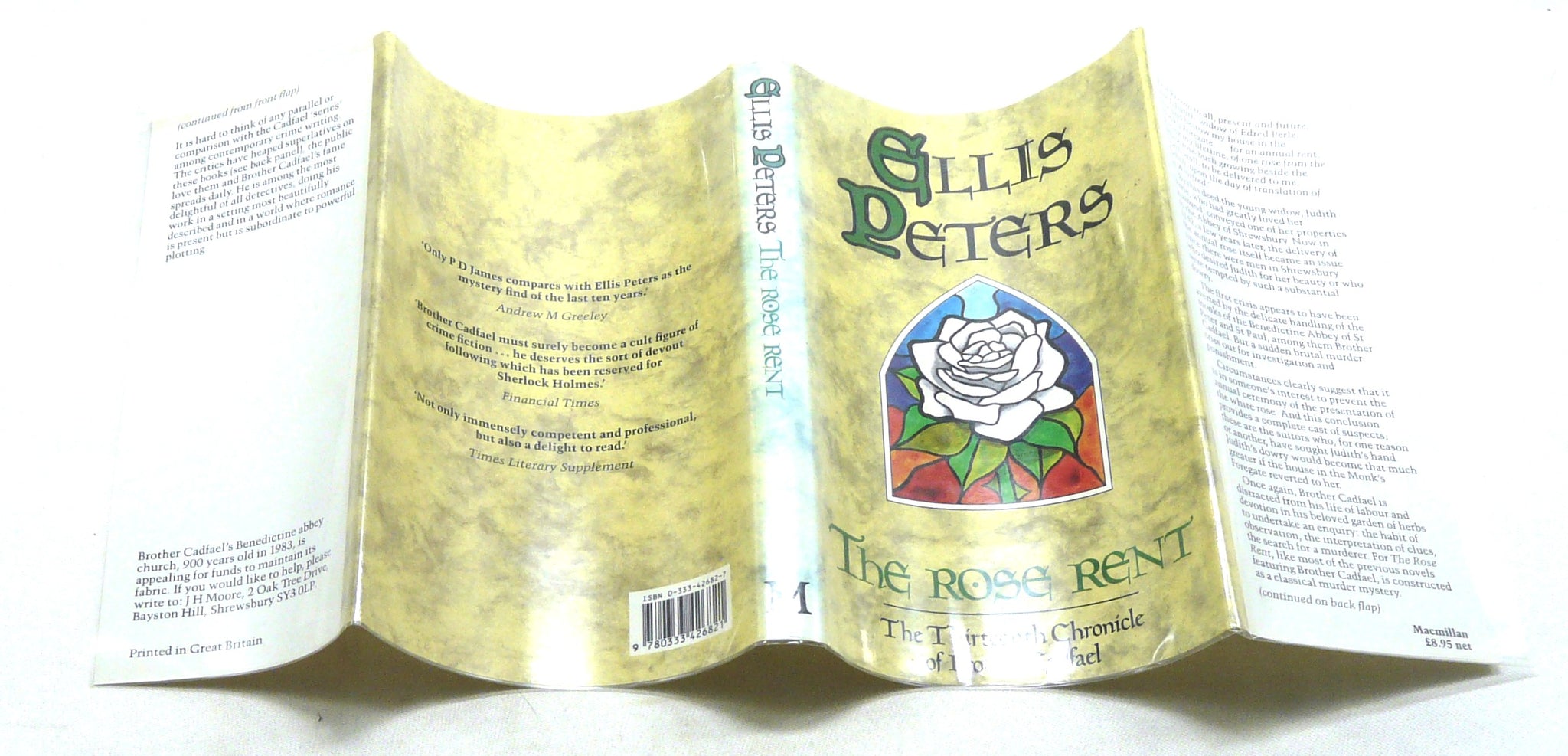 In all, this is a lovely first edition example of the 13th novel in Ellis Peters Brother Cadfael Chronicles. Ellis Peters is the pseudonym of British author Edith Pargeter, she is best known for her medieval detective series, the Brother Cadfael Chronicles. This series is a set of murder mystery novels set in 12th century England, during the Anarchy and they are centred around the protagonist, a Welsh Benedictine monk, Brother Cadfael, who aids the law by investigating and solving murders. In this novel he investigates a brutal murder that takes place with the intent of preventing the annual presentation of the white rose and the paying of the rose rent. This book would be a beautiful additgion to any Peters or detective fiction collection.
